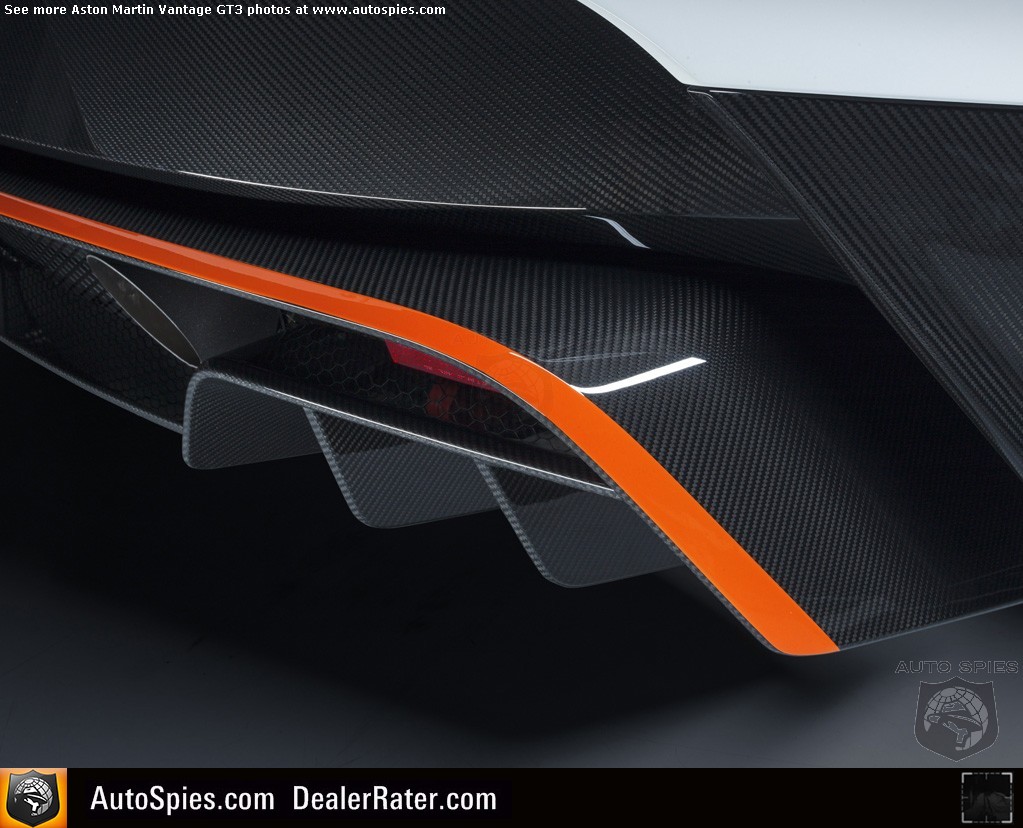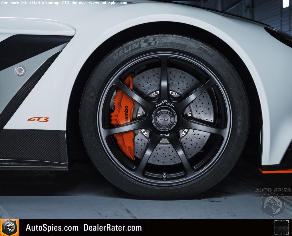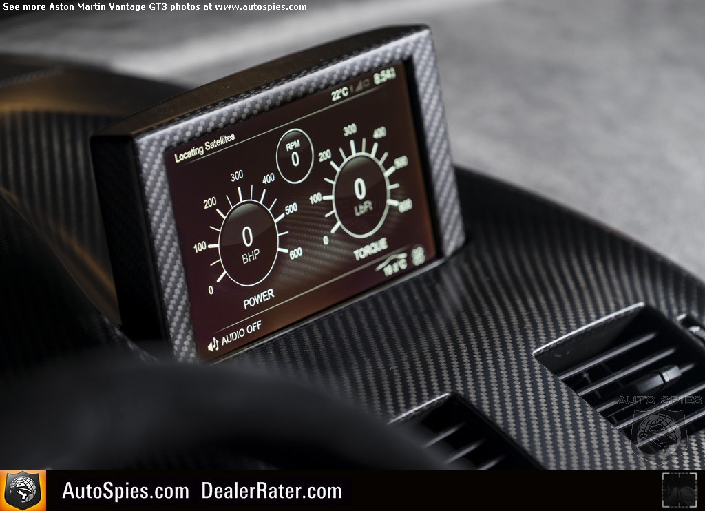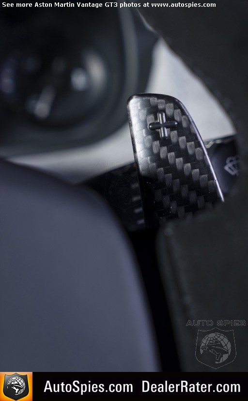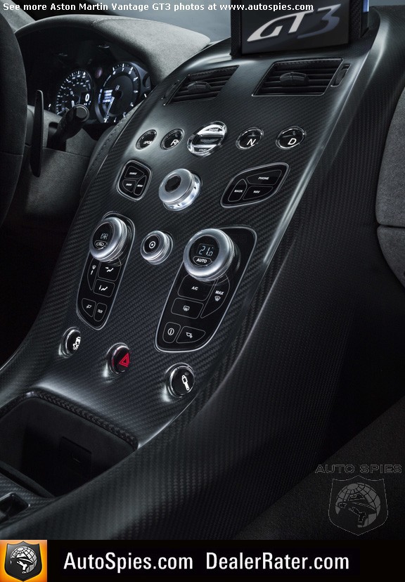 Like most GT3 road-going cars, this vehicle brings together the very best of what is possible from the marque's GT cars and track-bred products. That means there's more CF resulting in reduced weight, a wider track — front and rear — to enhance handling and, of course, more power. In addition, Aston revised this particular vehicle's center stack so that it is one large piece of carbon that has touch sensitive buttons as seen on its Vanquish GT car.