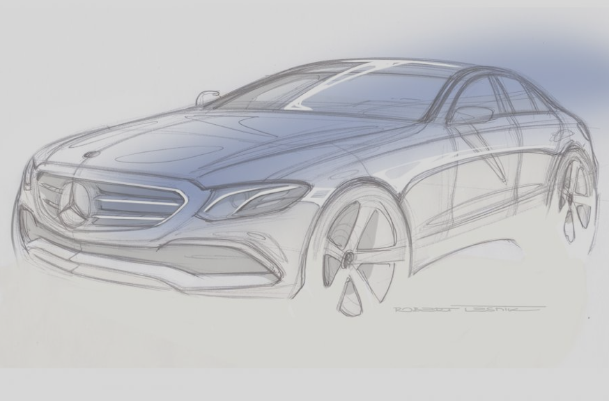 Though I've been keeping you on top of the latest with spy photos and videos, we have yet to see a company-issued image of its exterior until now. Released via Mercedes-Benz's Instagram page, below you'll find the full sketch of the all-new E from a front 3/4 perspective. Given it's large front air intake, I assume this an AMG Sport version. Could be wrong though.