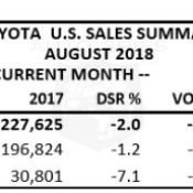 Toyota Motor North America (TMNA) today reported August 2018 sales of 223,055 u...