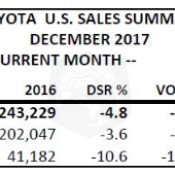 Toyota Motor North America (TMNA) today reported December 2017 sales of 222,985...