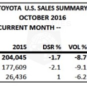 Toyota Motor Sales (TMS), U.S.A., Inc., today reported October 2016 sales of 18...