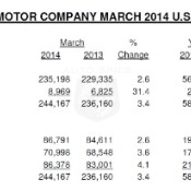 Ford Motor Company U.S. total March sales of 244,167 vehicles are up 3 per...