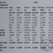 Audi reported February 2014 sales of 10,881 vehicles, which stands as the brand&...
