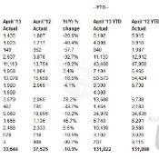 Audi today reported April 2013 sales of 13,157 vehicles, a 14.2% increase over ...