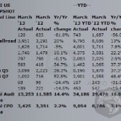 Audi today reported March 2013 sales of 13,253 vehicles, a 14% increase over th...