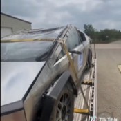 A crashed Tesla Cybertruck prototype was spotted on a car hauler after being sub...