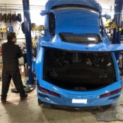 A Chevrolet C8 Corvette Stingray has been wrecked after falling off a two-post c...