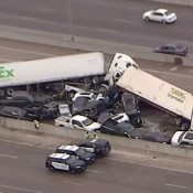 At least five people are dead and dozens more injured after a 100 car pile-up o...