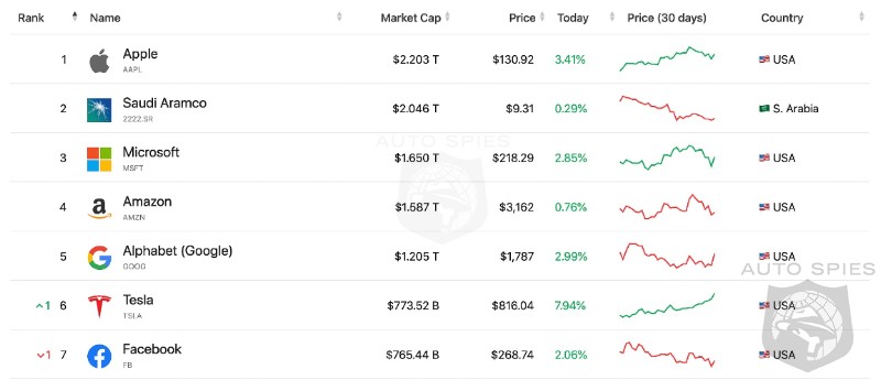 Tesla has officially overtaken the world’s largest social media platform, Facebook, as the sixth-most valuable company in the world. It is now the most valuable company in the world that isn’t worth $1 trillion; the top five companies are worth $1.2 trillion or more.