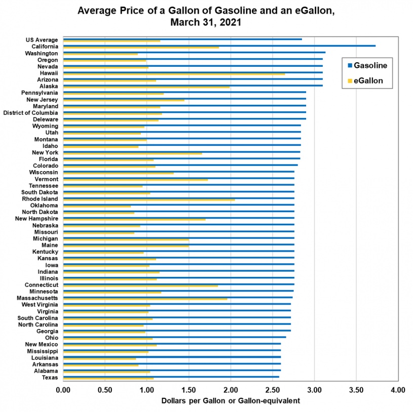 It's an interesting measure because it compares the cost of a gallon of gasoline with the cost of driving an average electric vehicle (home charging) the same distance as an average gasoline-powered vehicle (see sources for the details of the methodology).