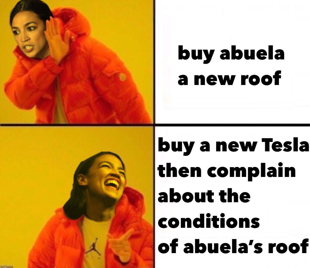 Let’s all kick in to help save AOC’s abuela’s ancestral home. Any amount is appreciated, but the cost of a monthly lease payment on that Tesla is around $499…