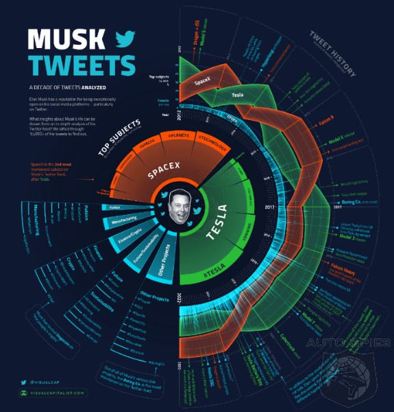 What can we learn from an in-depth look at Elon Musk’s Twitter feed? What subjects does he focus on the most, and how has his Twitter use changed over the past decade?