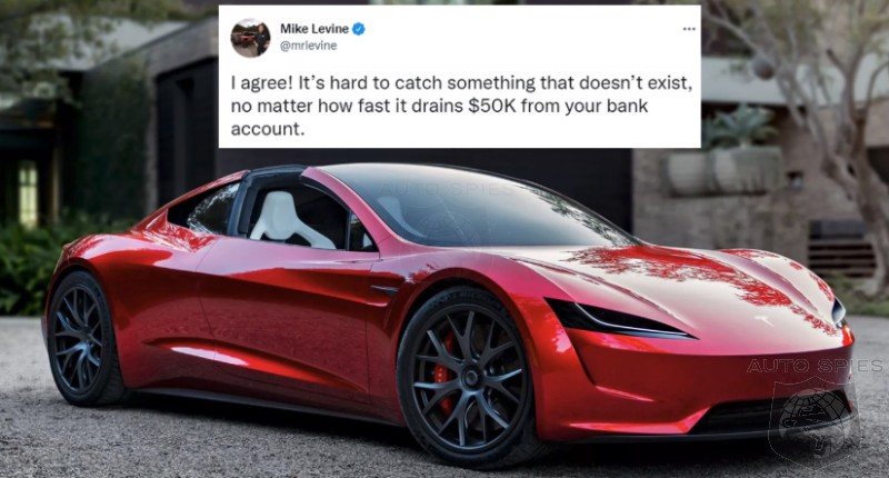 Responding to a tweet from a Tesla stock stan, showing the Tesla Roadster and saying “Catch Me If You Can $TSLA,” Levine hilariously mocked the MIA product by saying “I agree! It’s hard to catch something that doesn’t exist, no matter how fast it drains $50K from your bank account.”