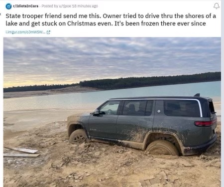 It never ceases to amaze us the predicaments people get into. Like this Rivian R1S that went mudding in the freeing cold only to get and and then frozen solid into the lake bed.