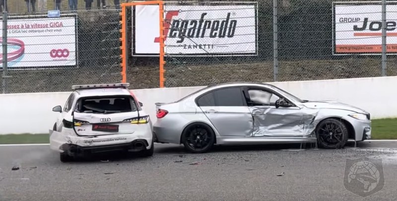 A perfectly lovely track event at the Spa-Francorchamps racetrack in Belgium turned sour when a participant's BMW M3 (F80) lost control and went sliding into the rear of an Audi RS4 Avant safety car.