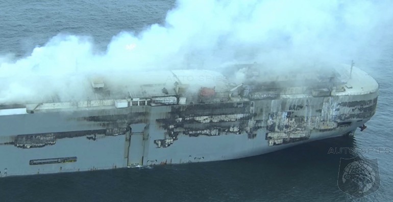 Officials Tow Burning Car Carrier Outside Of Shipping Lanes After It Was Discovered 500 EVs Were On Board Not 25 As Originally Claimed