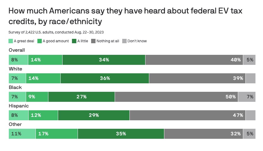 Driving the news: Just 22% know a "great deal" or "good amount" about the credit, which was expanded — with strings attached — under the 2022 climate law.