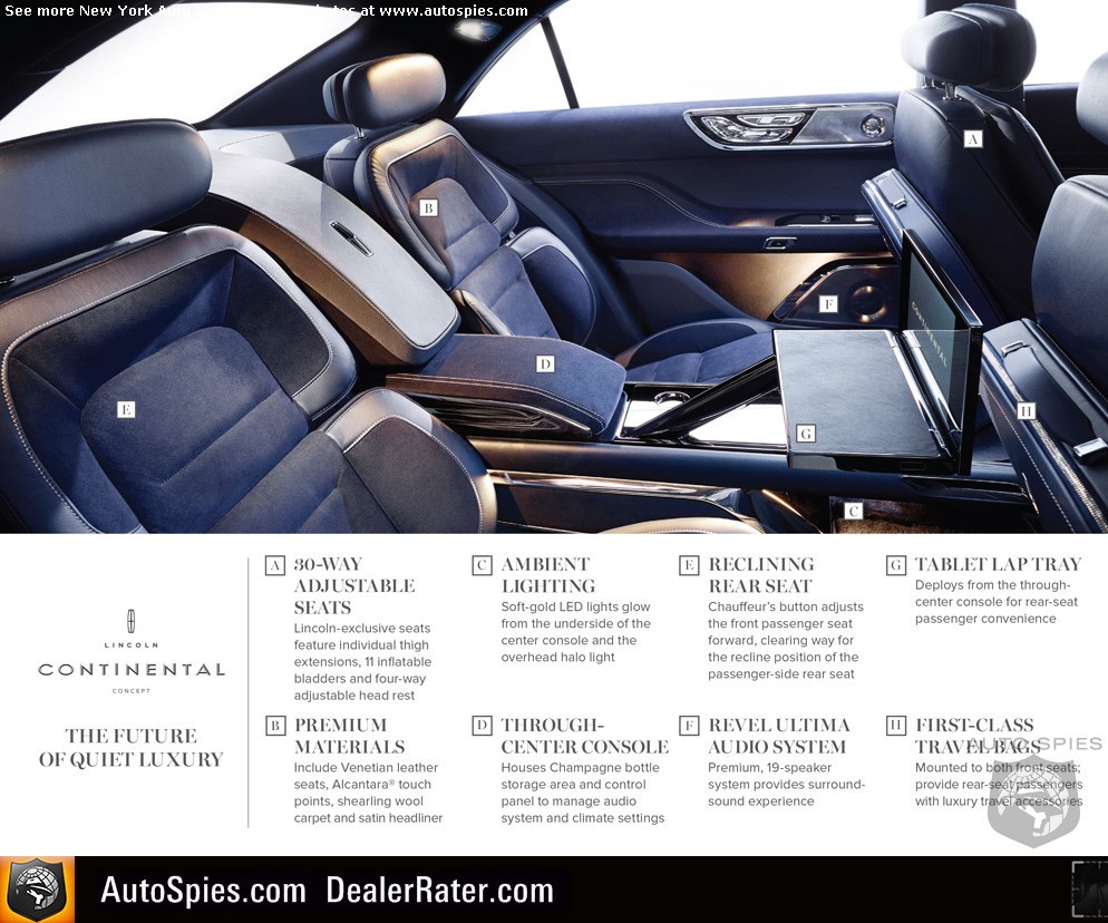 •  Lincoln Continental Concept integrates technologies designed to create better drivers, rejuvenate and entertain passengers, including all-new, Lincoln-exclusive 3.0-liter EcoBoost® engine, patented 30-way seats and premium Revel audio system