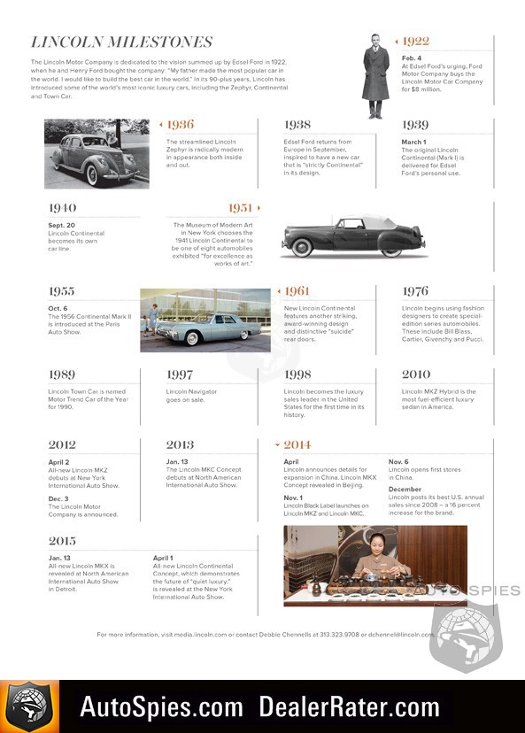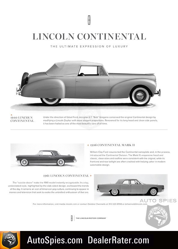 “Luxury at its best is about simplifying and quietly exceeding expectations, rather than being the loudest statement on the road,” said Mark Fields, Ford Motor Company president and CEO. “The Continental Concept showcases the promise of quiet luxury from Lincoln going forward. It also is a strong indication of what’s to come next year as we introduce our new Lincoln Continental full-size luxury sedan.”