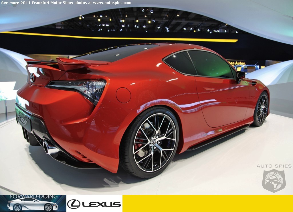 001 and I were catching up on the 2011 Frankfurt Motor Show and we both agree it's been very interesting to see how much buzz and excitement there was surrounding the Toyota FT-86 II Concept. It's not like its the first time we've seen it at this point.But that got us thinking quite a bit: what does this mean for Lexus?If you're a little perplexed, hold the phone. Remember, Lexus has been leading a push towards sportier offerings and is really trying to give more weight towards its F-Sport packages. Case in point: at the 2011 New York Auto Show, half of the Lexus booth was F-Sport packaged cars while the other half was hybrids.With that said, with the FT86 coming down the pipe SHOULD Lexus offer a premium performance version to go up against the Infiniti G, BMW 3-Series, Mercedes-Benz C-Class Coupe, Audi A5, etc.?And if they do, what should they name it?LF-S? LF-C? LF-Sc?Frankfurt Motor Show GalleryFrankfurt Motor Show GalleryFull Leaked Frankfurt Motor Show Guide Photo GalleryJaguar C-X16 Concept Photo GalleryFrankfurt Motor Show Preview Photo Gallery2012 BMW 6-Series Coupe M-Sport and Z4 2.8i Photo GalleryAston Martin Zagato V12 Photo Gallery2012 Jeep Wrangler PentaStar Photo Gallery2012 Toyota Camry Photo GalleryAutoSpies.com Photo GalleriesIf you want to see your photos running on our homepage photo ticker, be sure to upload your photos on the go by sending them to Mobile@AutoSpies.com Share on Facebook