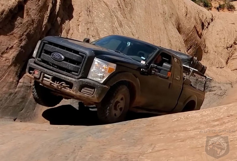Few things get me going like full-size trucks without all the aftermarket hoopla. They can tow what you need, haul what you need, and get where you need with little if any modifications. If you think I'm lying, look what this 2015 Ford F-250 with the 6.2-liter gas V8 can do courtesy of upgraded tires and lower gearing—it's climbing Hell's Gate, for goodness' sake.As you can see, traction and clearance are most crucial to conquer one of Moab's most famous obstacles. You've got to ride the sandstone wall at times, keeping the opposite side of your rig in mind as to not smash it completely. Instead of relying on a catalog of mods, though, this guy sends it in his Super Duty with 34-inch Toyos and a 4.88 rear-end.