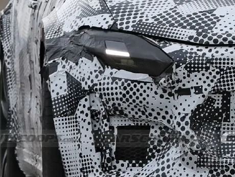 That’s because it uses new lighting units up front that appear to have been lifted from the Ferrari Roma. They have a very similar shape to the ones used on the front-engined GT and a horizontal LED strip right in the middle. It is still too early to confirm whether they have anything in common with the final production parts, but it’s nonetheless interesting to see it like this.