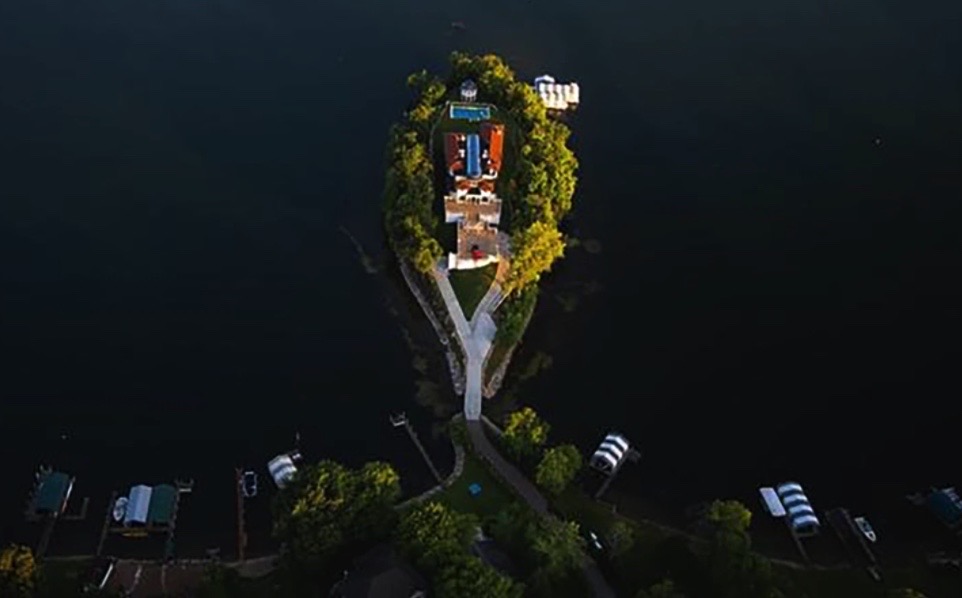 This wild mansion located on a private island in Minnesota comes with an especially unique amenity: unlimited underground car washes.