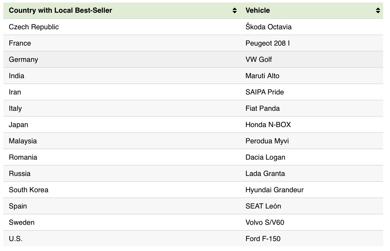 And it’s also a question of which manufacturer invested in the country. As the world’s largest automakers have raced to attract consumers in every corner of the globe, they built factories, renamed models, and even built specific cars to fit the tastes of individual countries.