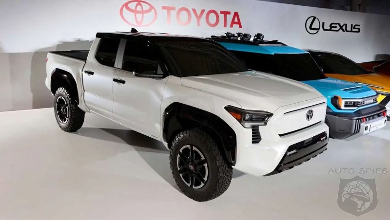 It also appears to be based on the Tacoma midsize truck, judging by its design and its size compared to the Compact Cruiser EV off-road SUV parked next to it.