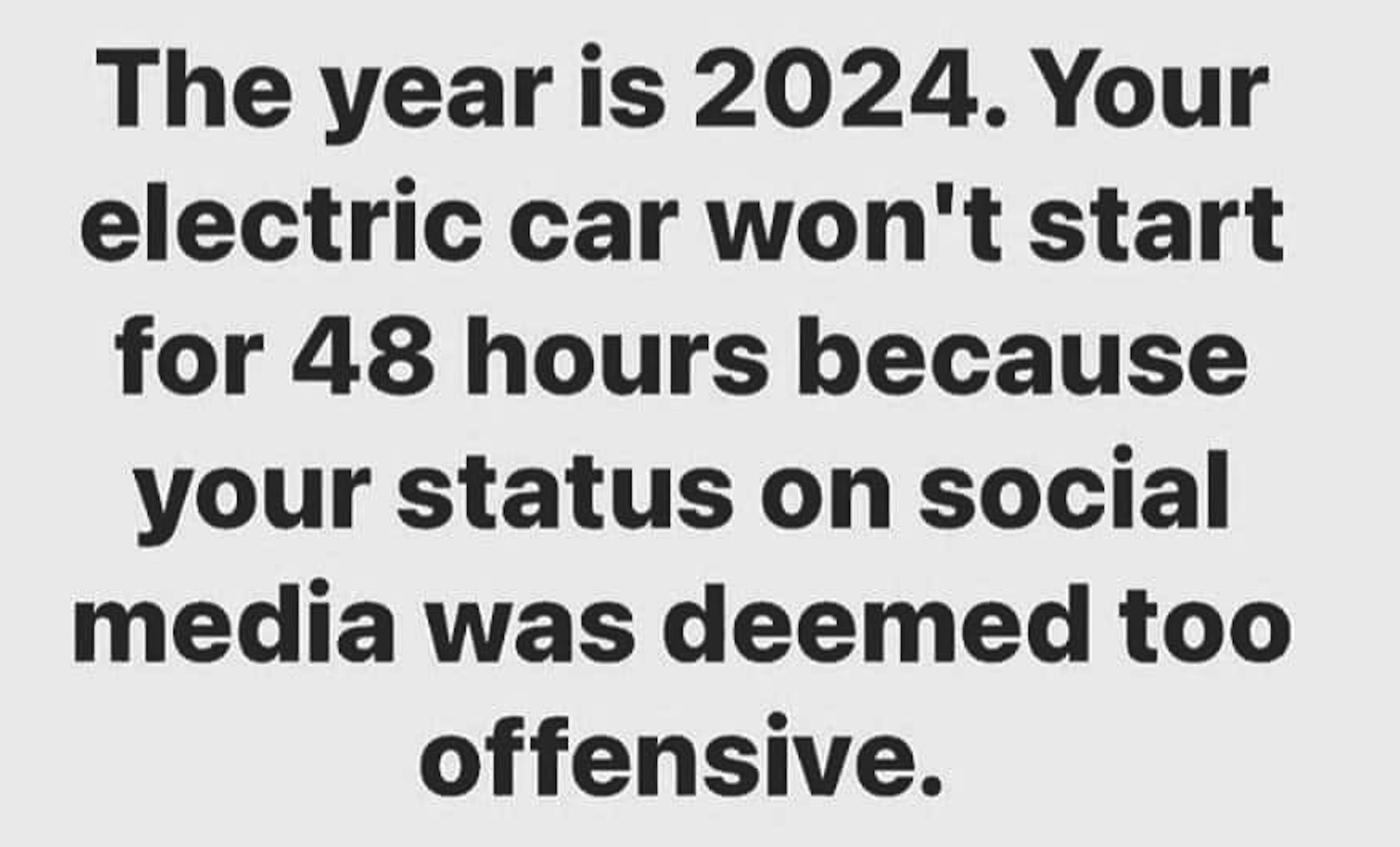 And could they eventually use this to punish people by doing things like turning off their electric cars when THEY deem social ideas offensive?