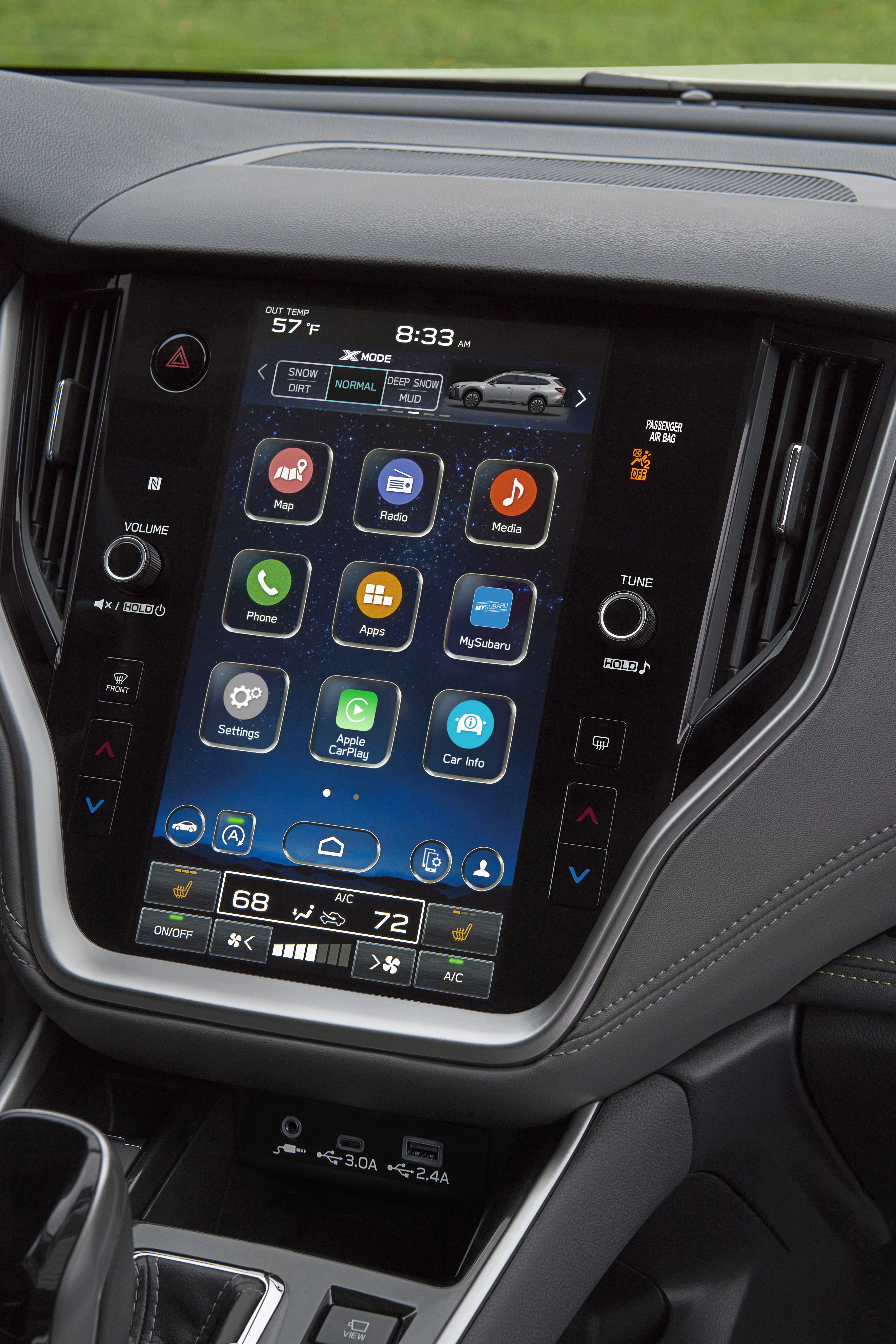 The 2023 Outback debuts the latest version of the STARLINK 11.6-inch Multimedia Plus system with standard wireless Apple CarPlay® and Android™ Auto with full screen display. The system features an 11.6-inch high-resolution touchscreen with combination meter integration and improved on-screen controls for audio, HVAC, X-MODE and vehicle features. Additional standard features include new Valet Mode; Bluetooth® hands-free phone and audio streaming connectivity; AM/FM stereo; rear vision camera; SiriusXM® All-Access Radio and SiriusXM Travel Link® (4-month free subscriptions); HD Radio®; and over-the-air updates.