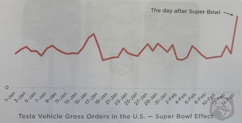 Most informative chart in the 1Q earnings deck: The day after the 2022 Super Bowl, $TSLA orders surged, which validates our long held view that competitors’ advertising their new EVs helps TSLA as EV market leader the most. @elonmusk @MartinViecha pic.twitter.com/68G4wOaqKn
