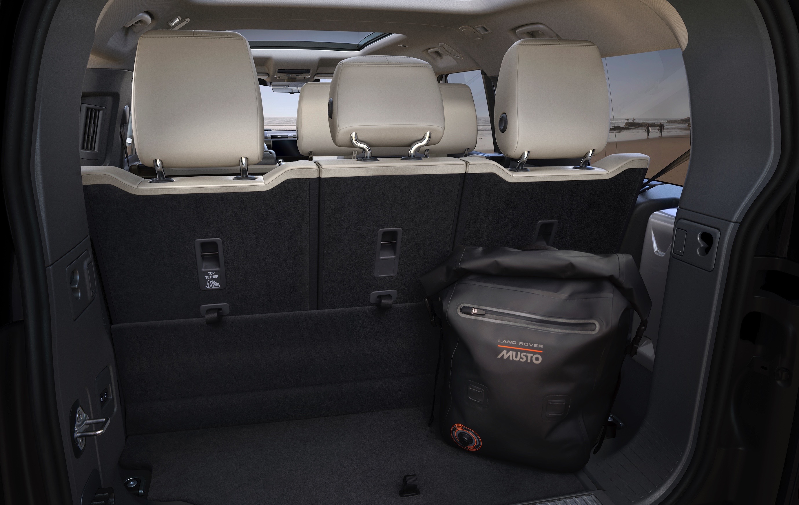 Passengers in rows two and three also benefit from a small stadium rise, for superior visibility. Getting in to the third row is effortless, as the row two seats slide and fold forwards to provide wide access. From the tailgate, customers can simply lower the Defender’s Electronic Air Suspension5 with buttons inside the load area to aid with loading items into the rear.