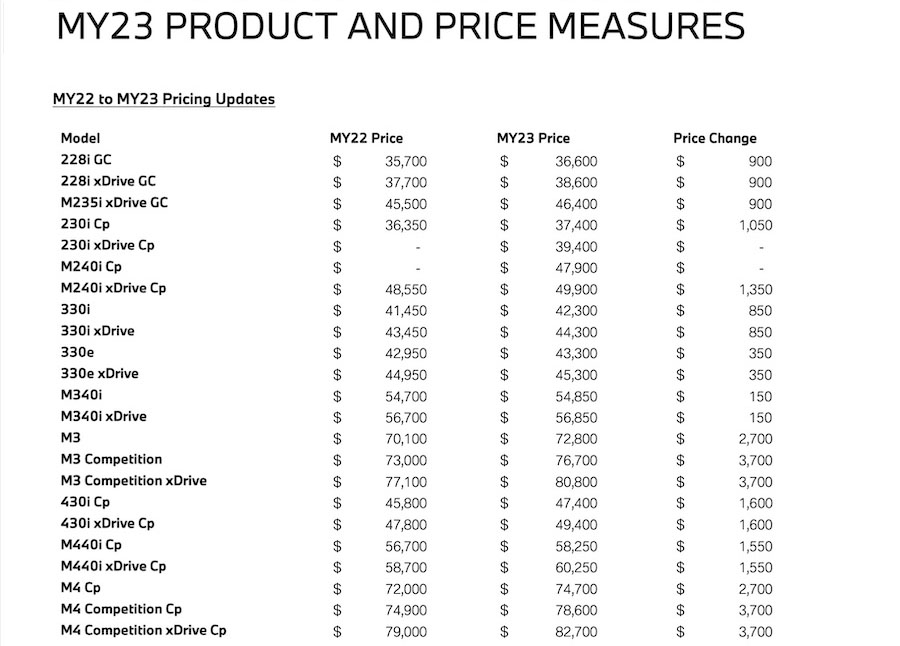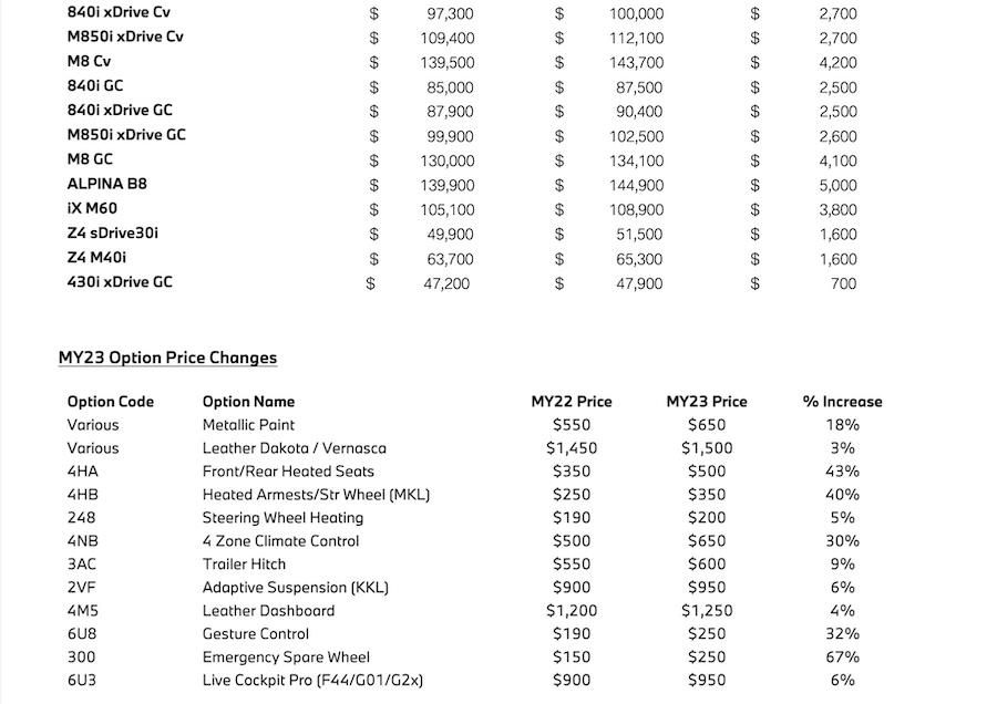 If you were waiting for prices to drop to pick up the ultimate driving machine, you're going to have to wait a lot longer as according to an internal document from BMW North America, pricing will increase across the board for 2023.