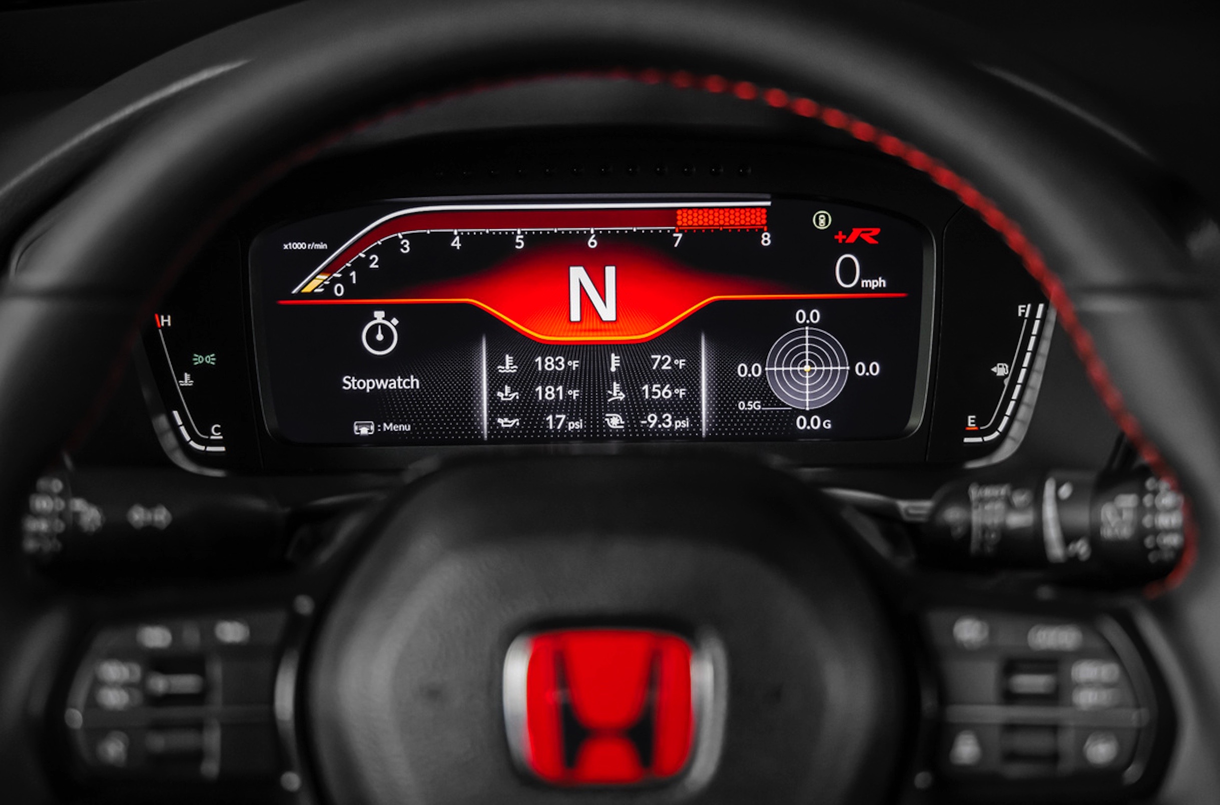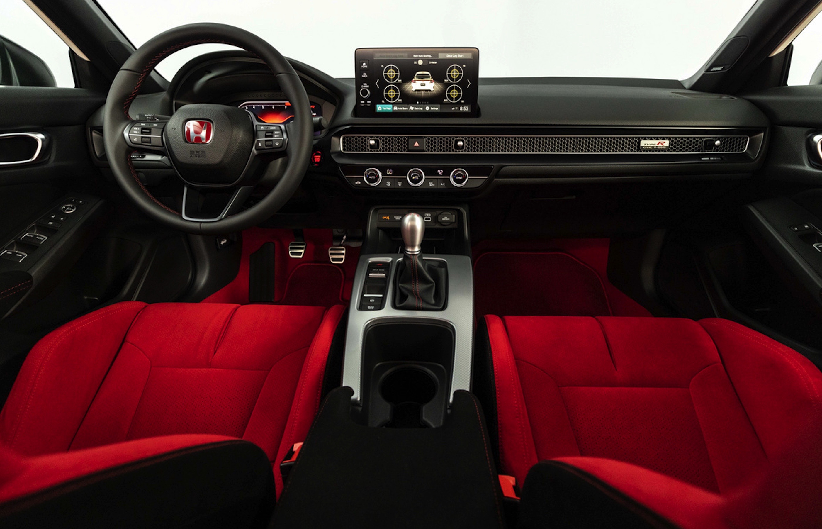 Immersive Cockpit Experience?Civic Type R's all-new interior supports intense driving experiences with emotive, performance-focused details and features. Type R's iconic red seats, carpet and trim, and a serialized Type R plate now placed on the dash are new for the 2023 model year. Suede-like upholstery with a high friction coefficient reduces body slippage in high-G driving situations.
