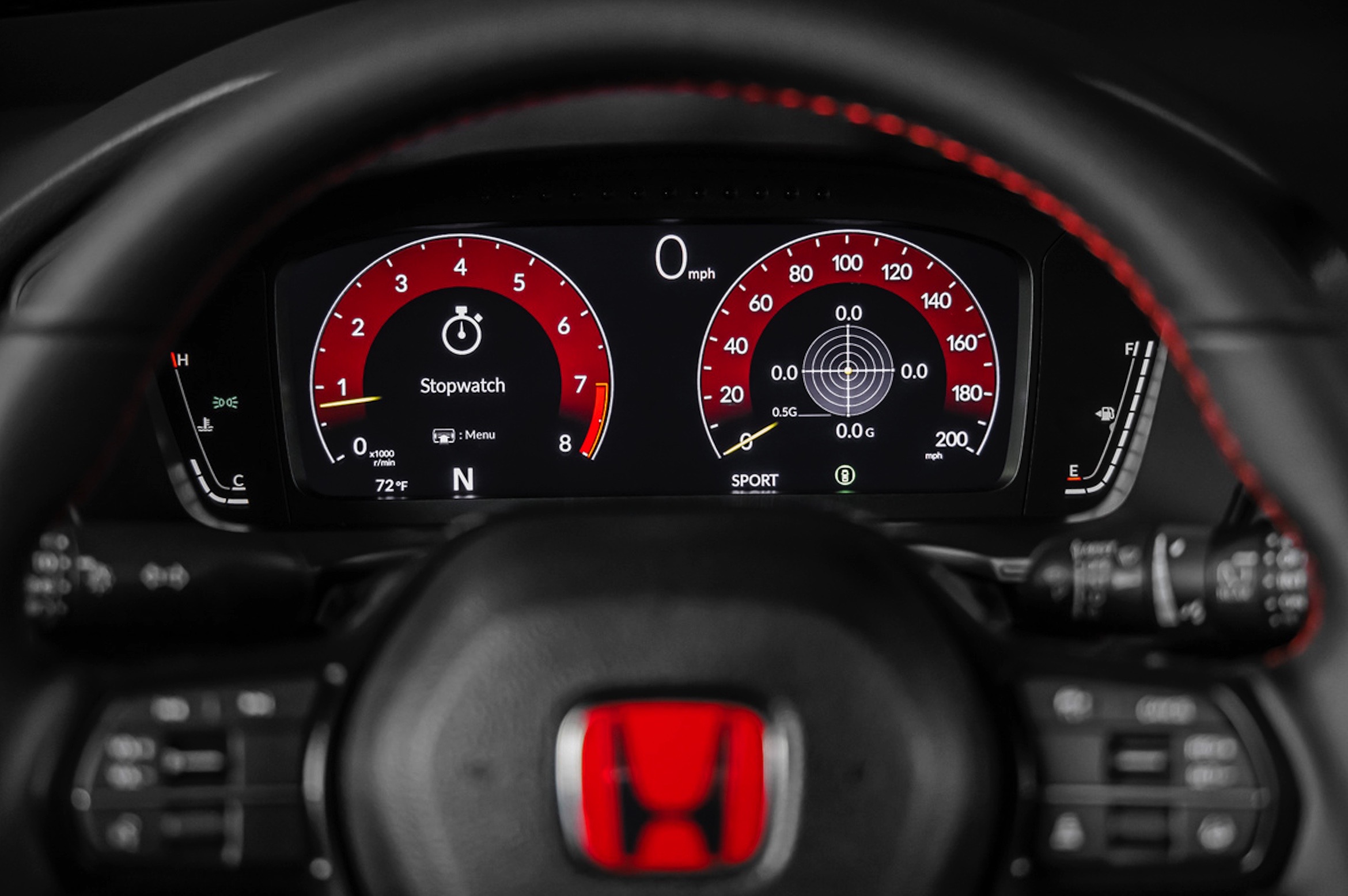 The Honda LogR™ data logger provides real-time information on the mechanical movements of the vehicle and vehicle behavior resulting from the driver's input. Other key features include a stopwatch to record lap times and the ability to share driving videos.