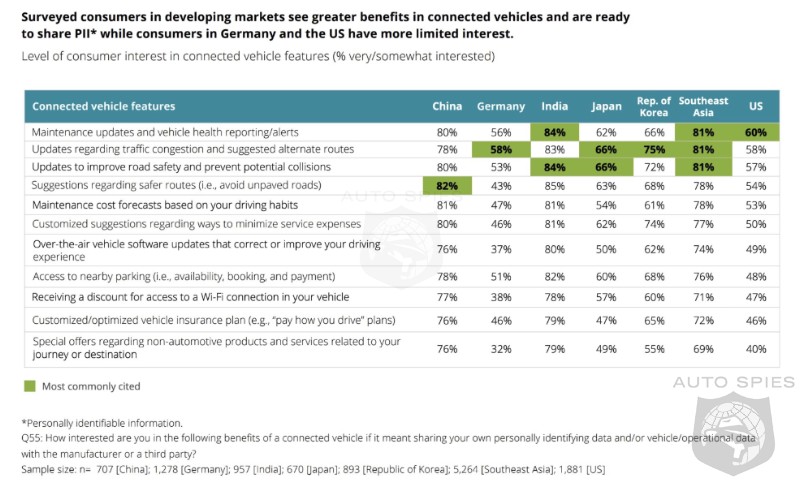 The 2023 Deloitte Global Automotive Consumer Study asked drivers in several large markets, including China, Germany, India, and the United States, if they are interested in the benefits of a connected vehicle if this involves sharing personally identifying data.