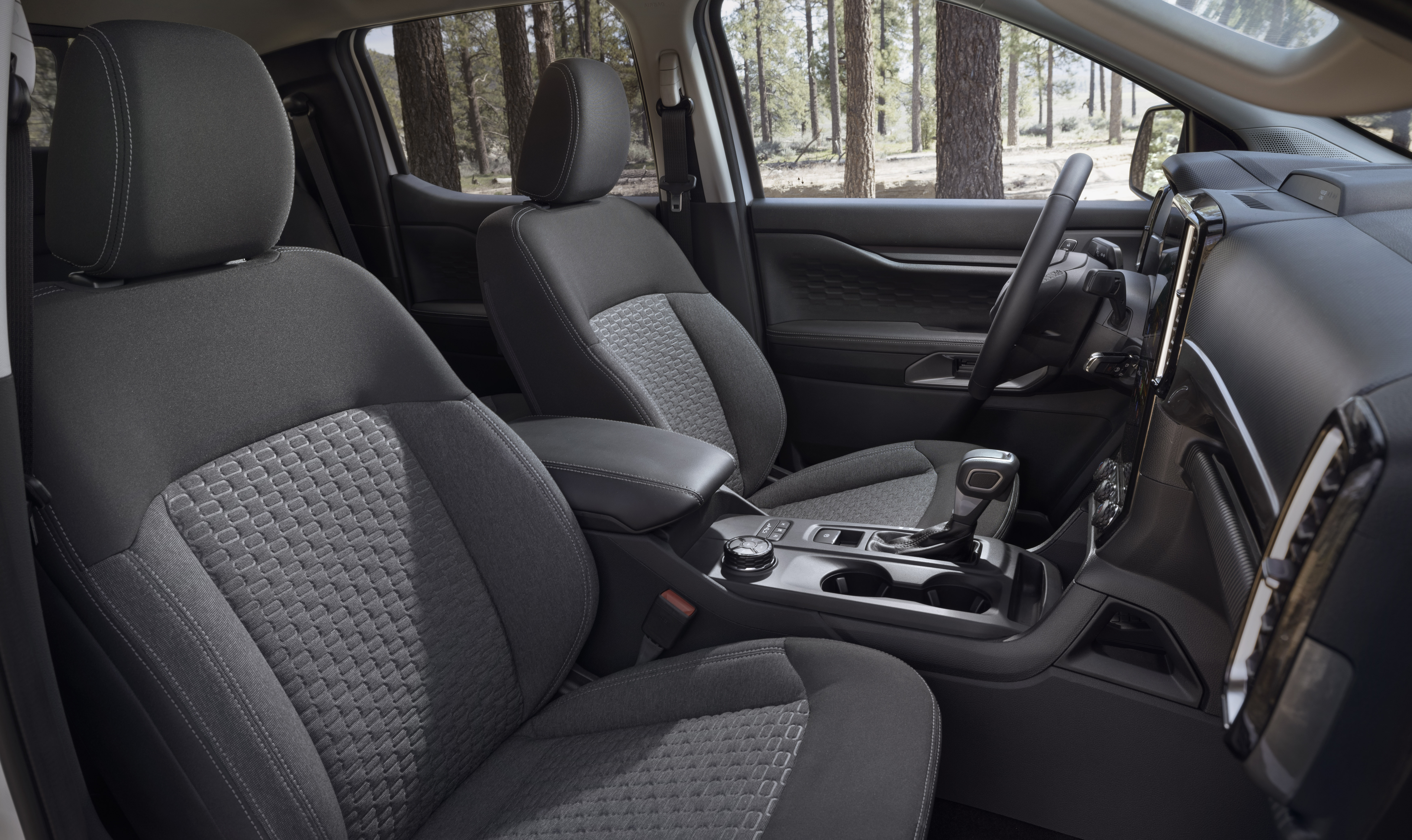 The new interior features upgraded materials and textures, improved fit and finish, and more purposeful technology. The experience starts with a standard 8-inch digital instrument cluster or available full-screen 12.4-inch cluster and is complemented by a standard 10.1-inch or best-in-class** available 12-inch center touchscreen with Ford’s SYNC®4A?system, which puts smart and connected features at your fingertips. Ranger includes a standard embedded 4G LTE modem and the convenience of features built into FordPass® Connect†††.