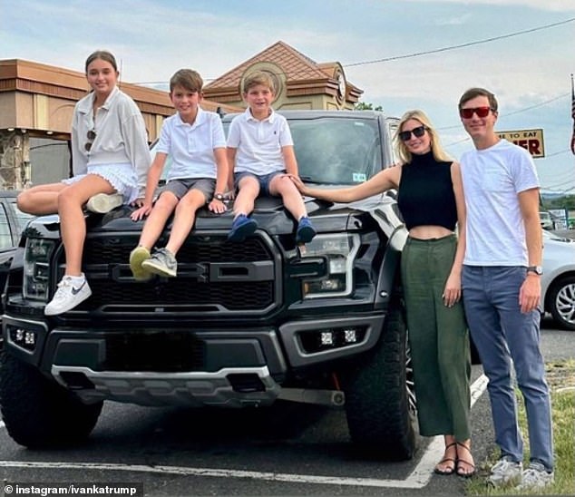 Ivanka shared glimpses of their family outing on her Instagram Story, where they posed next to a magnificent Ford Raptor pick-up truck.