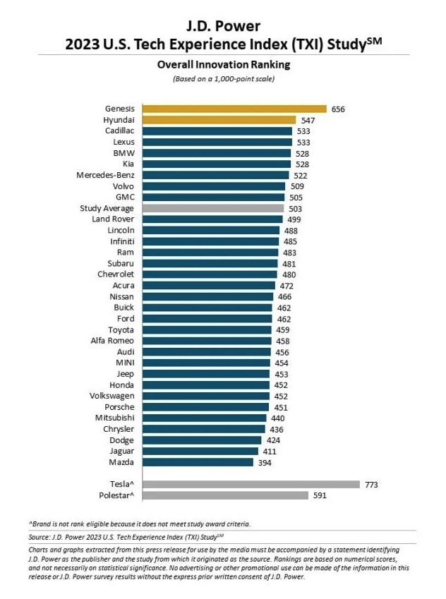 The 2023 U.S. Tech Experience Index (TXI) Study is based on responses from 82,472 owners of new 2023 model-year vehicles who were surveyed after 90 days of ownership. The study was fielded from February through May 2023.