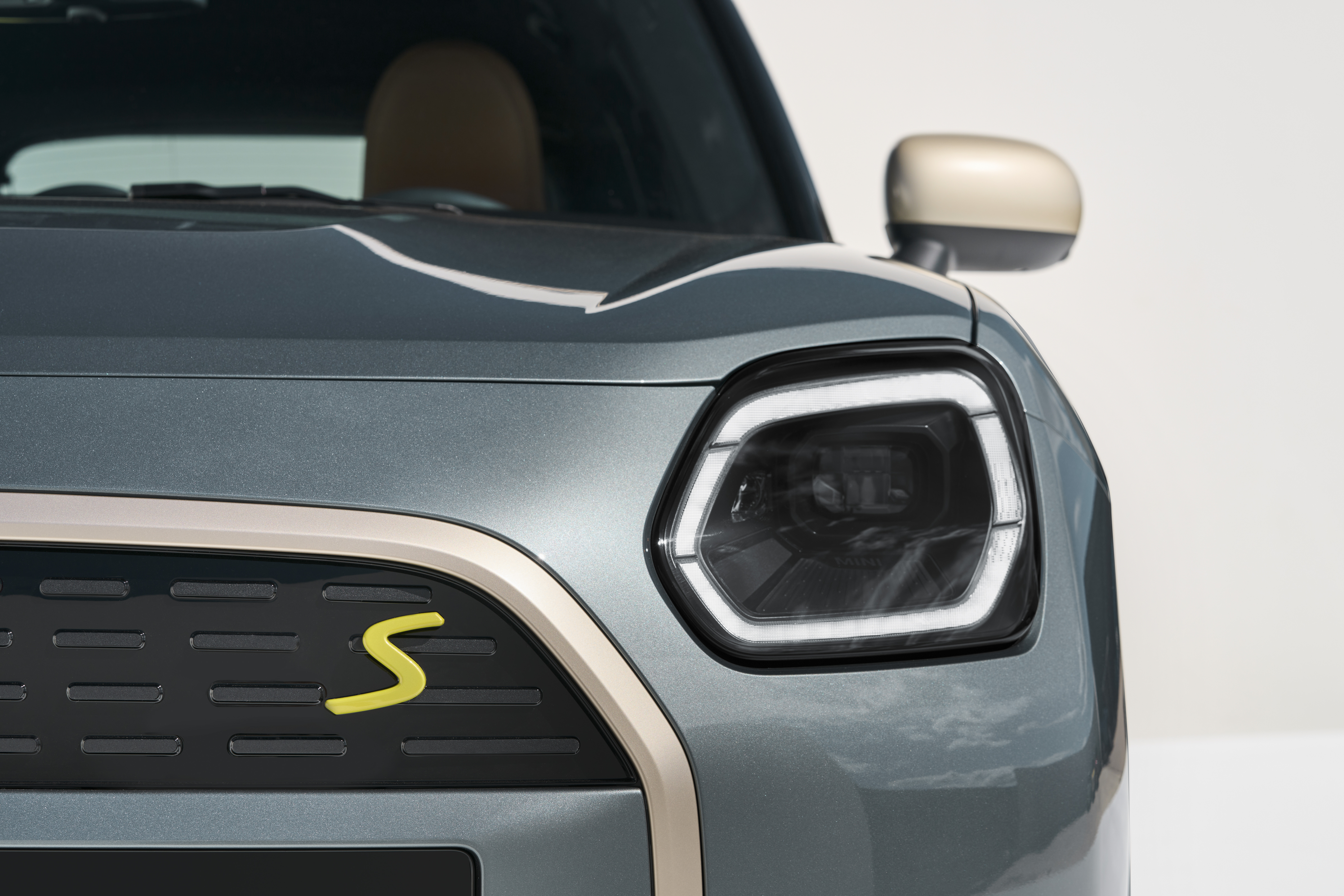 As with the body design as a whole, the front headlights are not framed with chrome elements anymore, which results in the front section having a focused expression. Together with the tautly curved bonnet, the slightly wider track and the raised body, the most versatile MINI exudes superior robustness.