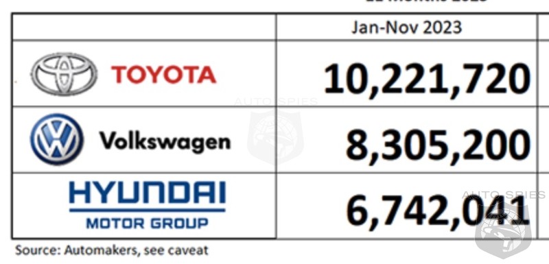Fans of Musk predict with ever-increasing shrillness the imminent demise of the “legacy” automakers. If the legacy automakers would just listen. Look at the chart, showing the global sales of the world’s largest automakers for the months of January through November 2923. The chart either attests to the health of the “legacy” OEM, or it signals that fans of Musk need to have a few sessions with their psychiatrist – up to you.