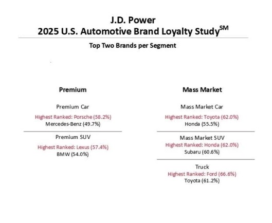 The U.S. Automotive Brand Loyalty Study, now in its seventh year, uses data from the Power Information Network® (PIN) to calculate whether an owner purchased the same brand after trading in an existing vehicle on a new vehicle. Customer loyalty is based on the percentage of vehicle owners who choose the same brand when trading in or purchasing their next vehicle. Only sales at new-vehicle franchise dealers qualify. The study includes brand loyalty across five segments: premium car; premium SUV; mass market car; mass market SUV; and truck.