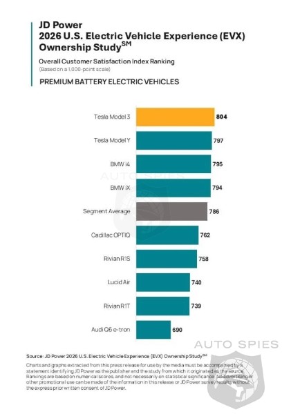No models were award-eligible in the PHEV segments; however, the average overall owner satisfaction score for premium PHEVs is 756, up from 741 in 2025 and the average overall satisfaction score for mass market PHEVs is 658, up from 632 last year.
