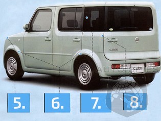 The Cube concept is unusual because of its asymmetrical, or non-mirror image, exterior. Look at the placement of the rear windows (#7), for example. That's something we as Americans, or most people, are not use to seeing.