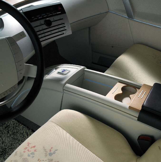 The YCC gives you all-round flexibility. You can choose the ride height - either Hi, if you like a commanding view of the road, or Lo, for a sportier feel. And you can radically change the look of the car interior whenever you feel like it. There are eight exchangeable seat pad options to choose from, everything from dark brown leather, linen and wool bouclé, to a shimmering yellow-green embroidered seat pad.
