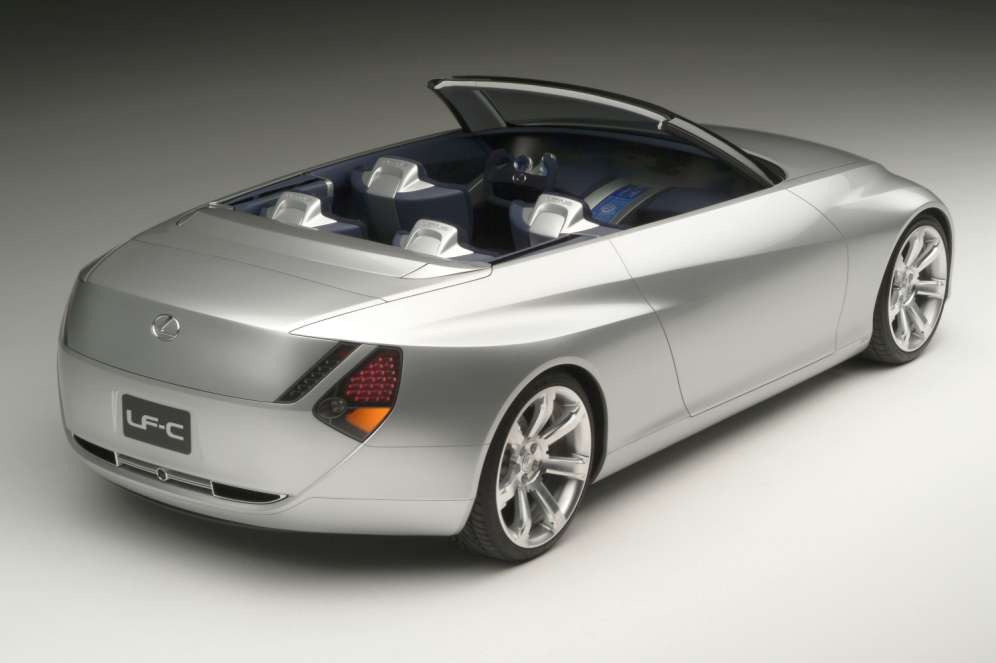 As you see, the LF-C can be configured as a coupe,...targa,...speedster,...and fully-open convertible. The powered top stows neatly into the trunk through a surprisingly minimal rear-deck opening.