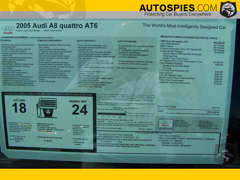 Here are the first pics of the 2005 A8.The 2005's are now arriving in dealerships...***note the new antenna that no longer looks like a shark fin.