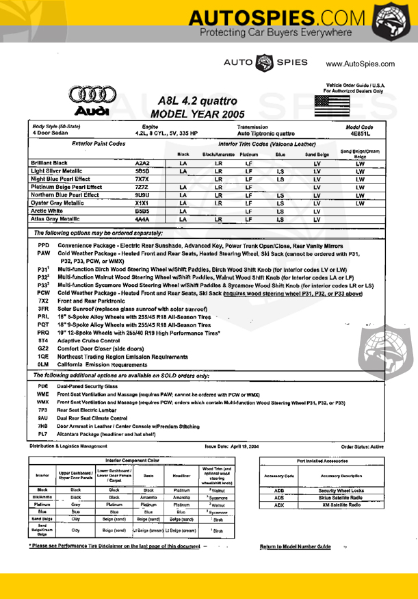 The 2005 Audi A8 is pretty similar to the 2004 model with a few exceptions...