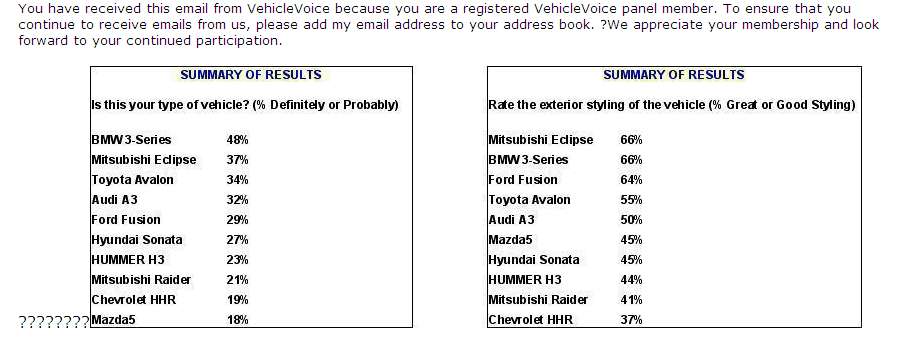 Here's an exterior design survey completed for one of the manufacturers and the final rankings.